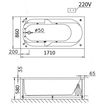 ► Bản vẽ kỹ thuật Bồn tắm massage xây Caesar MT0570