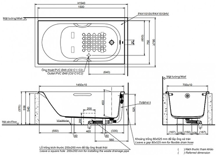 ► Thông tin chi tiết Bồn tắm nhựa TOTO PAY1510V#W/TVBF411