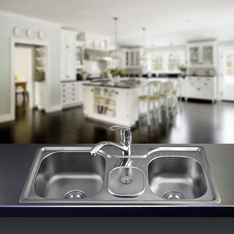 Chủng loại: Chậu rửa chén Inox 3 hộc không cánh, có hộc rác