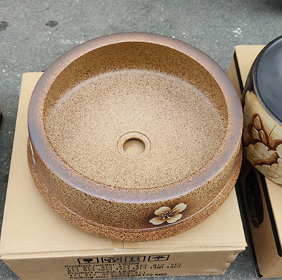 Lavabo đặt bàn hình tròn màu nâu đất muối tiêu giả cổ