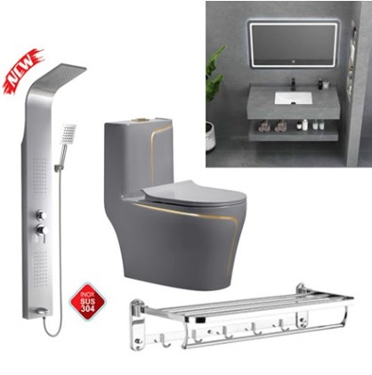 Combo bộ nhà tắm cao cấp màu ghi xám 053