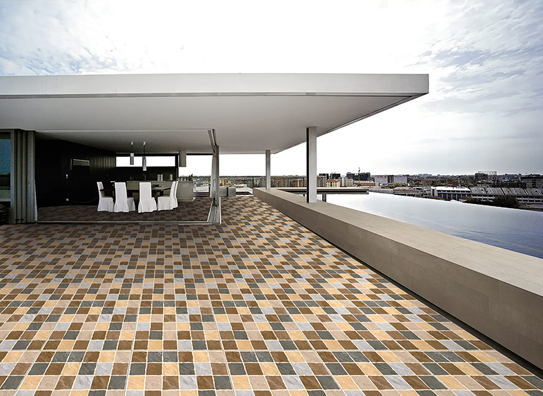 - Gạch 60x60 phù hợp lát nền khu vực ngoài trời, sân xe, hành lang, ban công, sân thượng, khu vực công cộng,...