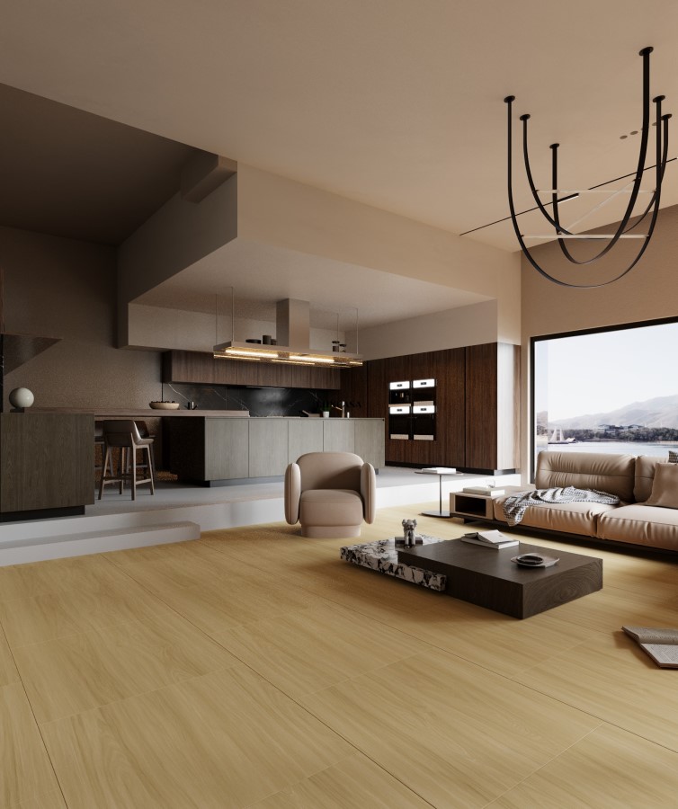 • Chất liệu đá Porcelain, bề mặt mờ (Matt), màu nâu vàng nhạt, vân gỗ tự nhiên