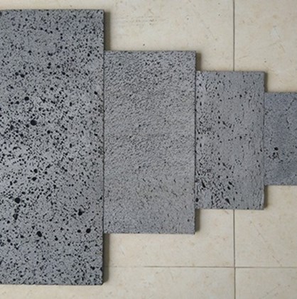 Chất liệu đá, bề mặt nhám sần, có lỗ nhỏ, màu xám