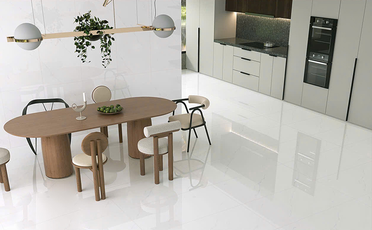 - Đá Porcelain cao cấp, bề mặt phủ men bóng hiện đại