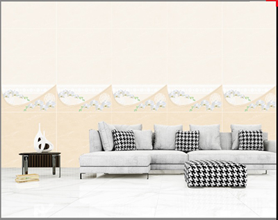 - Gạch mài cạnh, màu vàng kem vân đá, điểm nhành lan trắng