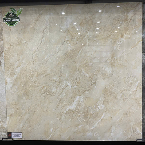 - Đá Porcelain cao cấp, bề mặt siêu bóng kính, màu vàng vân đá