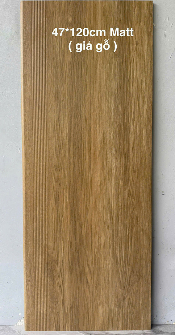 Gạch lát cầu thang 47x120 mờ vân gỗ nâu vàng