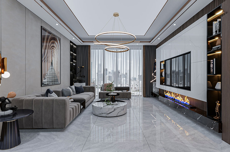 - Đá Porcelain cao cấp, bề mặt phủ men siêu bóng hiện đại
