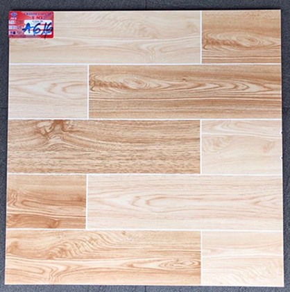 Gạch men ceramic, bề mặt bóng, màu vàng nhạt vân gỗ ghép