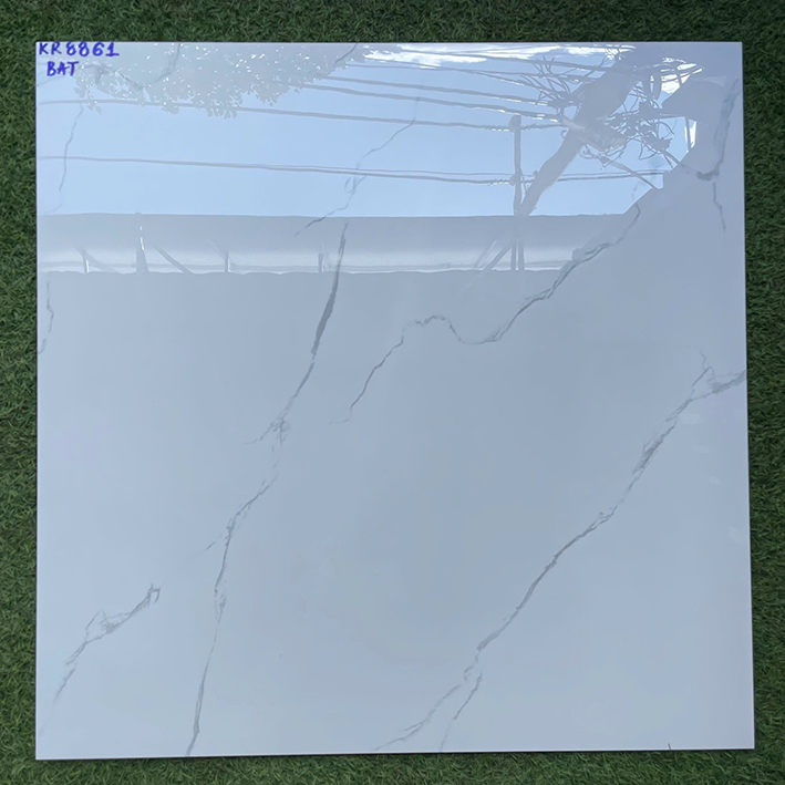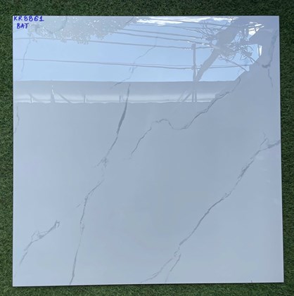 - Đá Porcelain, phủ men bóng, màu trắng vân khói sang trọng, hiện đại