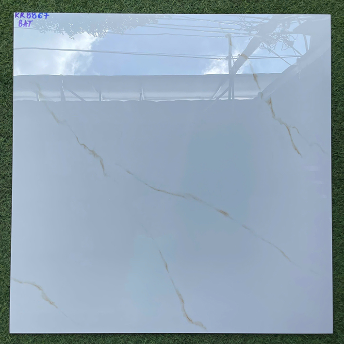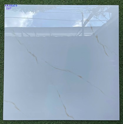 - Đá Porcelain, phủ men bóng, màu trắng vân nâu nhạt sang trọng, hiện đại