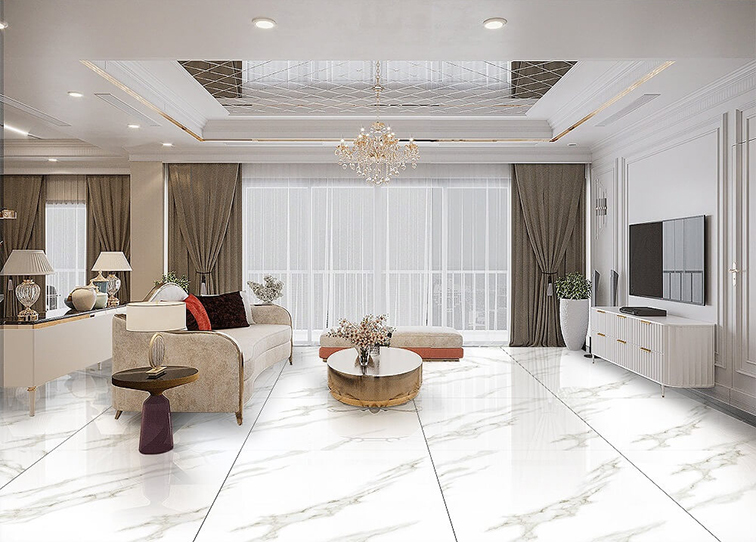 - Đá Porcelain cao cấp, bề mặt phủ men bóng hiện đại