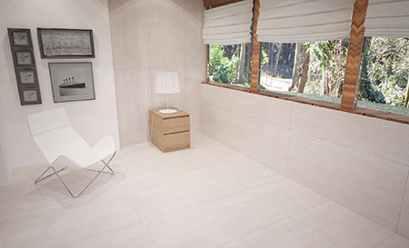 • Đá Porcelain cao cấp, màu kem nhạt, vân tự nhiên