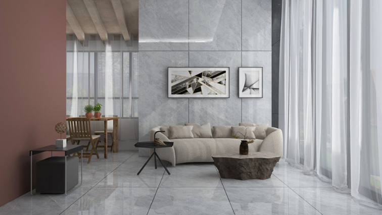 - Đá Porcelain cao cấp, màu xám nhạt vân đá hiện đại