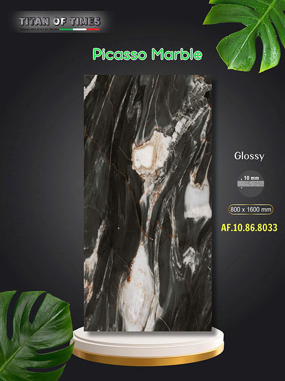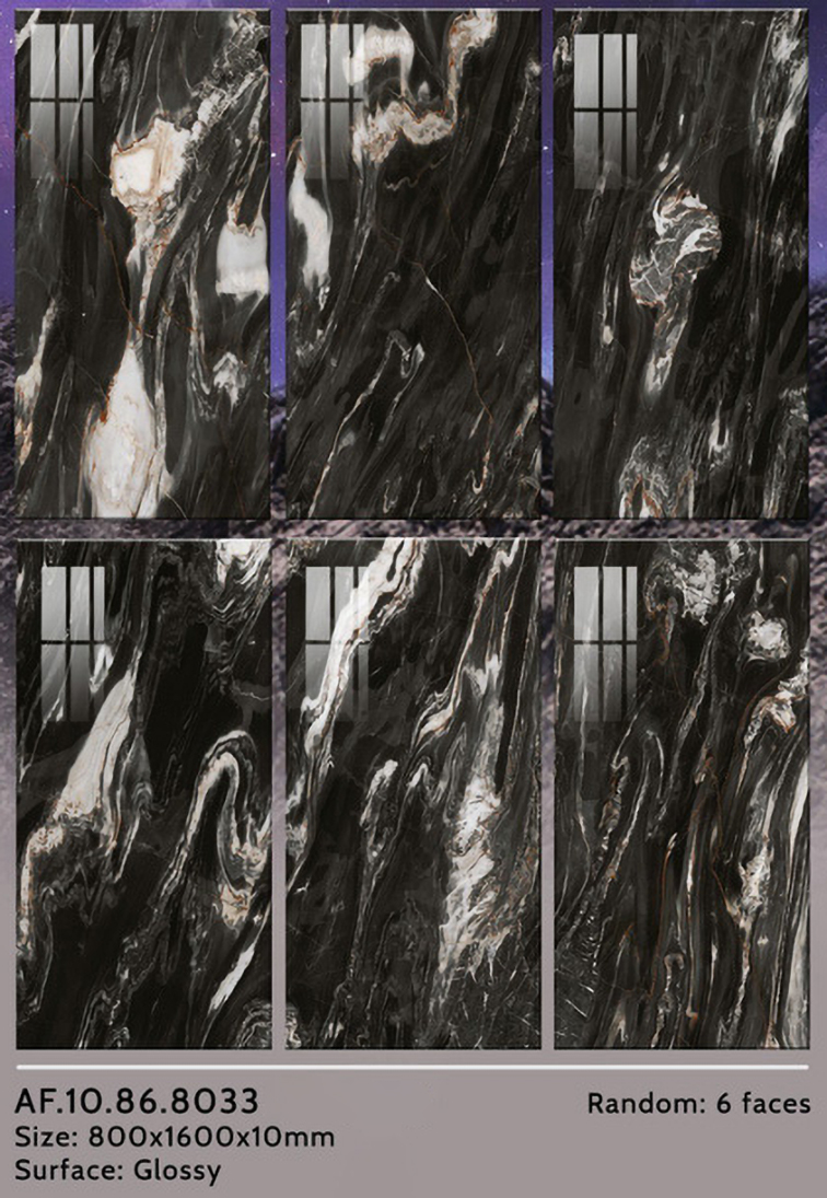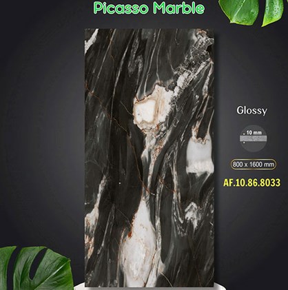 - Đá Porcelain cao cấp, màu đen vân đá trắng, cam hiện đại