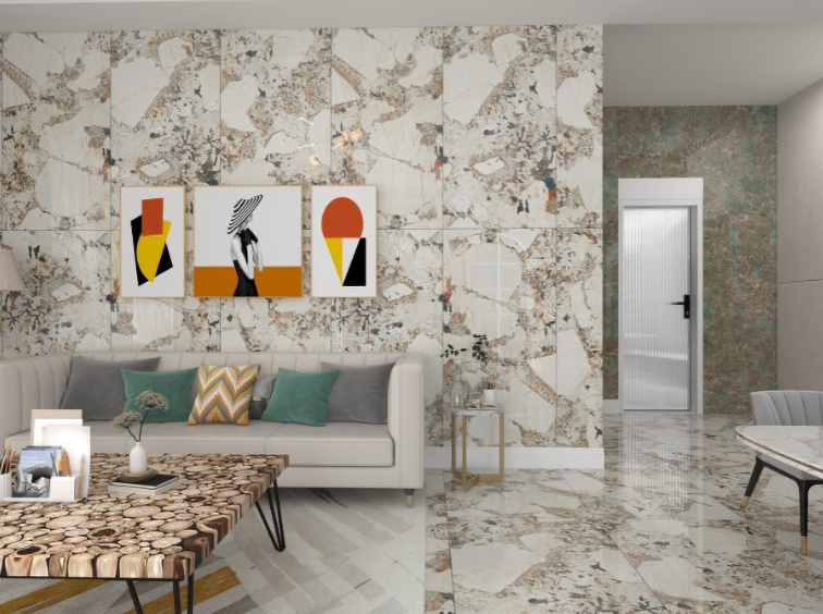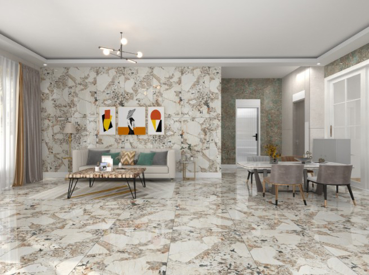 - Đá Porcelain cao cấp, màu vàng nâu vân đá hiện đại