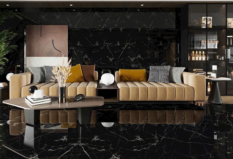 • Đá porcelain cao cấp, bề mặt phủ men bóng hiện đại
