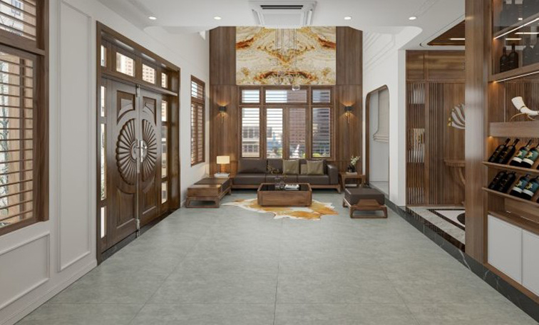 • Đá porcelain cao cấp, bề mặt phủ men mờ hiện đại