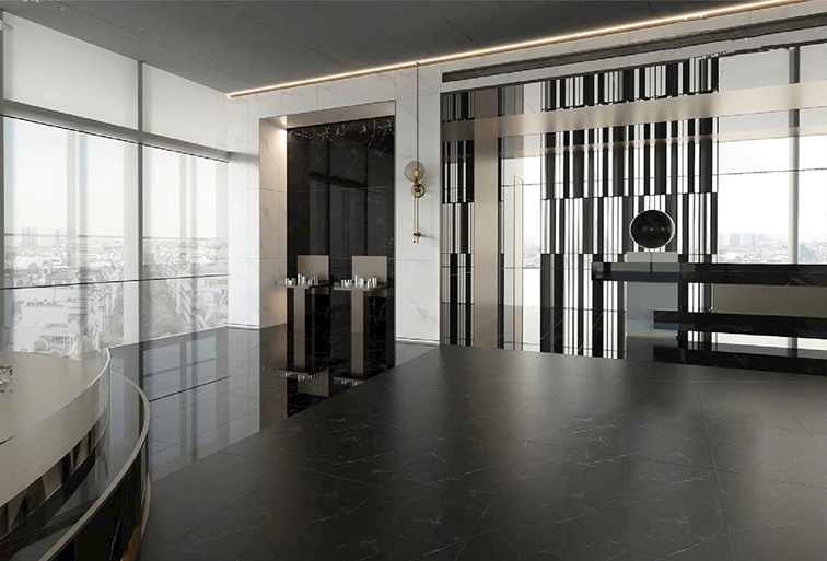 - Đá porcelain cao cấp, bề mặt phủ men mờ hiện đại
