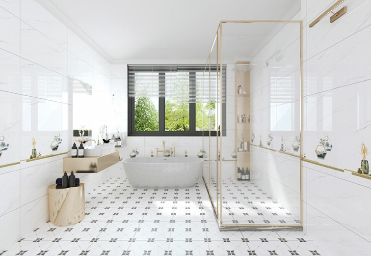 - Đá Porcelain cao cấp, bề mặt phủ men siêu bóng hiện đại
