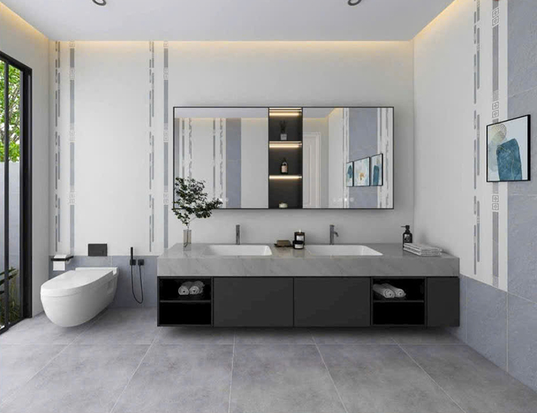 Gạch 30x60 phù hợp làm gạch ốp tường phòng khách, phòng ngủ, phòng bếp, nhà tắm, khu vực giếng trời, sân phơi,...