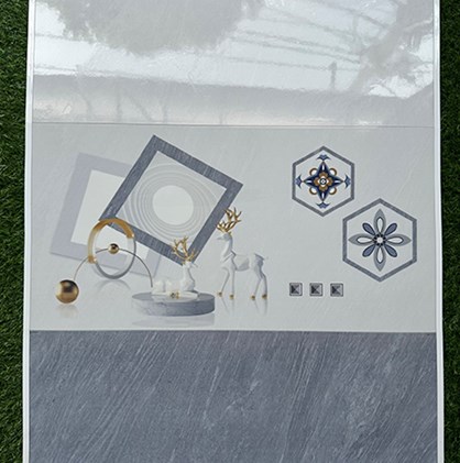 Gạch men bóng, màu xám trắng vân đá, điểm hươu trắng