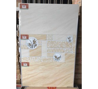 - Chất liệu men bóng cao cấp, màu vàng kem vân đá, điểm bông lau