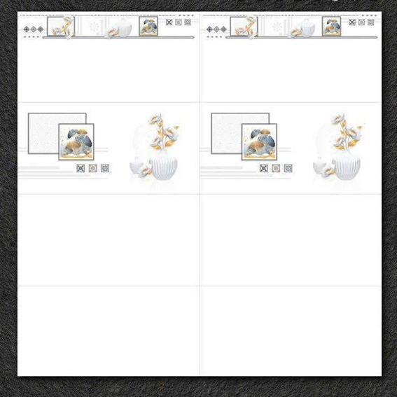 • Đá Porcelain bóng kính, màu trắng trơn, điểm họa tiết bình bông sang trọng, tinh tế