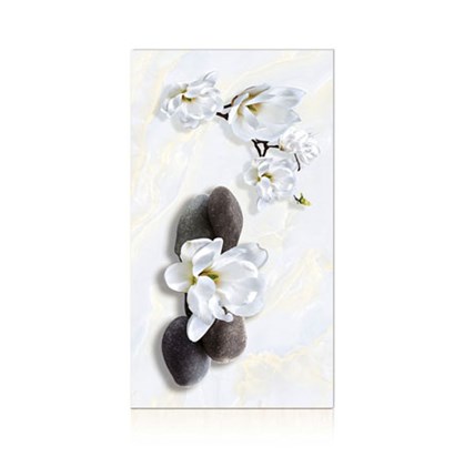 - Gạch men ceramic, bề mặt bóng, mài cạnh, màu xám, họa tiết bông