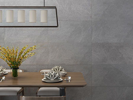 - Gạch men ceramic, bề mặt bóng, mài cạnh, màu ghi xám, vân đá