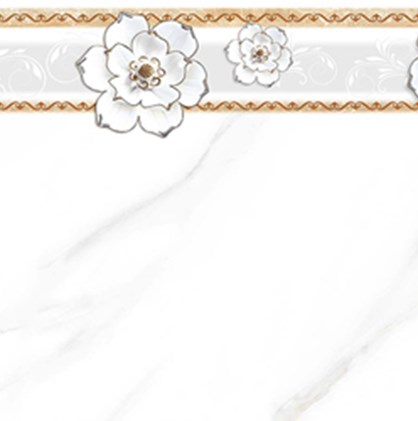 - Gạch viền, bề mặt bóng, màu trắng vân khói, họa tiết bông