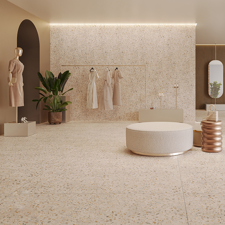 - Màu be vân đá terrazzo, 6 faces ngẫu nhiên, hiện đại, tinh tế, tính thẩm mĩ cao