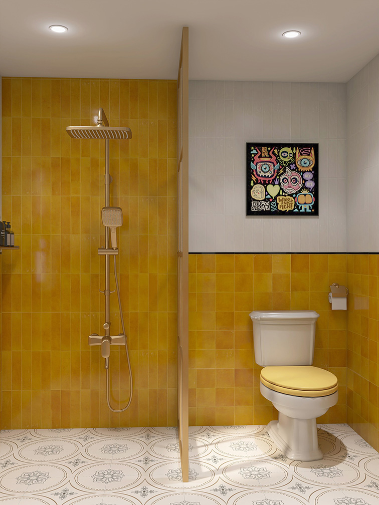 - Màu vàng đậm kẻ ô ghép đẹp, sang trọng, hiện đại