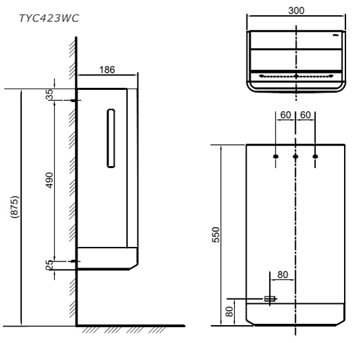 Bản vẽ kỹ thuật Máy sấy tay TOTO TYC423WC