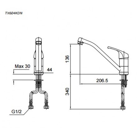 ► Bản vẽ kỹ thuật Vòi rửa chén Toto TX604KDN