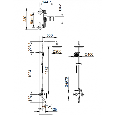 Bản vẽ kỹ thuật Vòi sen cây tắm Inax BFV-2015S