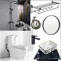 Combo bộ nhà tắm cao cấp trắng chỉ đen 049